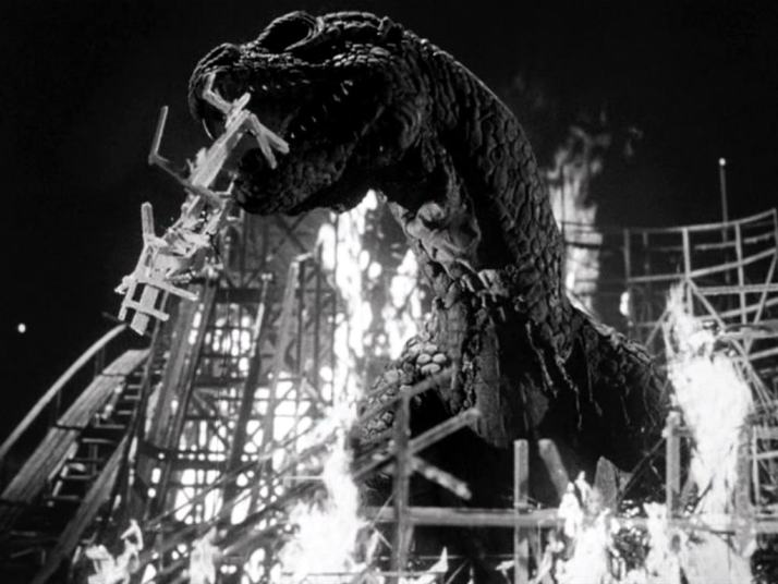 しかしラストシーンの燃え上がる木製のローラーコースターを破壊しながら、アイソトープ弾を打ち込まれ力尽きるリドサウルスはなかなか見応えがあり、デビュー作でハリーハウゼンのアニメートのテクニックはほとんど完成の域に達しているといってもいいのではないでしょうか。