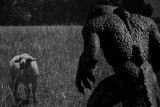 脱走したイーマは牧場に迷い込んでしまう。動物たちが慌てて逃げる中、逃げ遅れた(というか、逃げる気が無かったとしか思えない)一匹の子羊と向かい合うイーマ。
