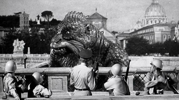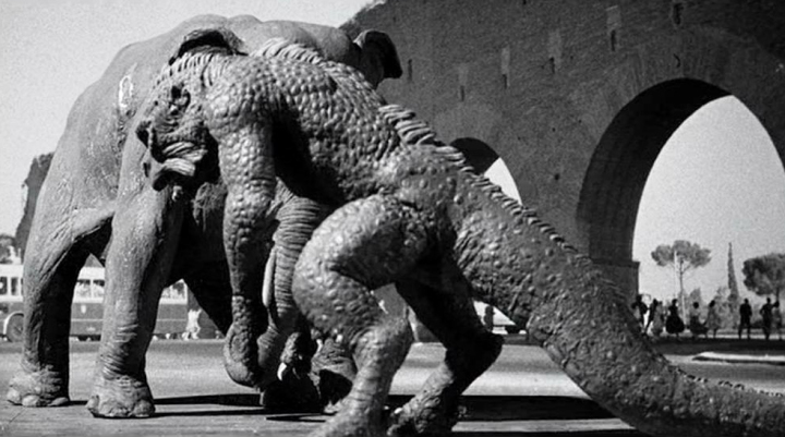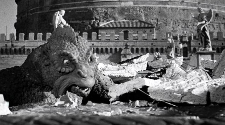 ボルゲーゼ美術館、ティヴェレ川、サンタンジェロ橋、フォロ・ロマーノ、そしてコロッセウム。念願のヨーロッパ旅行でハリーハウゼン先生も気合いが入ったか。実写との合成で我々見客も名所巡りが出来るという嬉しい展開。ここから先は異常に大きいイーマ。