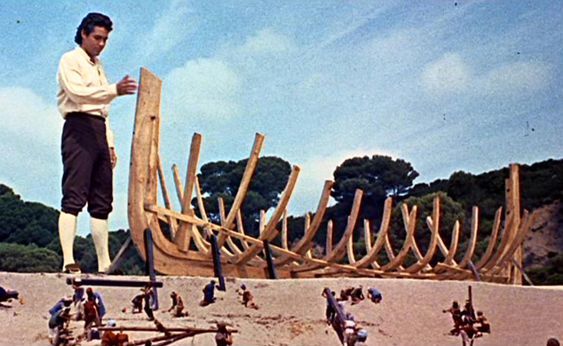 当時の最先端のトラベリング・マット技術や、遠近撮影法などを利用して作られた画面はかなり完成度が高い。軍艦や王宮などのミニチュアのセットも驚くほど正確に作られているので、見ていて楽しくなってきます。