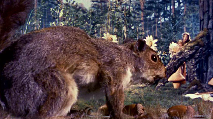 ハリーハウゼンの人形アニメが見られるのは、結婚した二人が新婚旅行と称し、王宮から抜け出したときにリスに襲われるシーンと、最後のワニとの決闘シーンだけで、そういう意味では、見どころはあまり多くありません。