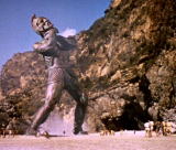 このトリトンは製作日数が足りなくて俳優を使うしかなかったそうです。1週間で撮り終わる必要があったということですが、たしかにモデルでは数ヶ月かかってしまうから無理な話。もう一つの理由は水を使用するシーンだった事。モデルはサイズが小さいので、水しぶきとのバランスがとれず不自然になってしまうからです。というわけで、ハリーハウゼンが名前を忘れてしまうほど無名な役者さんがトリトンを演じる事になったのです。