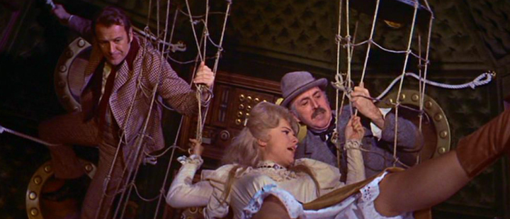 月旅行の話を聞いたキャスリンは怒って出ていってしまうのだが、出発直前に屋敷がベッドフォードの所有物でない事がばれてしまう。彼を問いただそうと訪ねて行くと、宇宙船は今まさに飛び立とうとしていた。「そこに居ては危なーい」というわけで、宇宙船の中に引きずり込まれてしまうというお約束の展開により、めでたく三人そろって月世界旅行へと出発することになった。