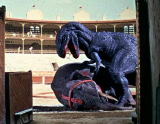 そこで見衆が目にしたものは、恐竜の口にくわえられてもがき苦しむチビ助の姿であった。