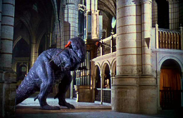 人を連れ去る翼竜、肉食恐竜とトリケラトプスの戦い、モンスターと象の格闘などは過去のハリーハウゼン作品でも描かれていたものばかりですが、まあファンとしては何回見ても嬉しいものだし、一回切りにしておくには惜しい過去の名場面が蘇った事は、それで良しとしましょう。