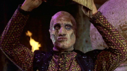 意味が分かりませんが、焼けただれた顔でびっくりさせておいて、そのすきに逃げようという戦法でしょうか?とにかくこの作戦は成功し、原住民から逃れた一行は、地下からマリアンナの連れ去られた洞窟の奥へと入って行く。仮面を脱ぐのは意味不明だですが、シンドバッドにはこうなることがわかっていたという事でしょうか。それともご都合主義?