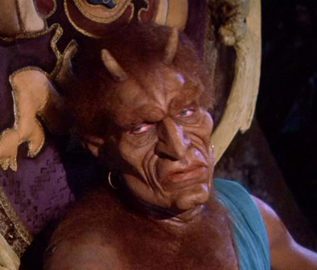 カリボスのアップは人間が特殊メークで演じ、格闘シーンなどのロングショットがストップモーションで描かれているのですが、違和感がありすぎて別の生物に見えてしまう。元々は、全てストップモーションで描かれる予定だったのですが、映画の内容を理解しやすくするために、説明的な台詞を話す必要があったので人間の俳優を使ったとの事。カリボスのモデルの骨格は、前作『シンドバッド虎の目大冒険』の一角原始人トロッグのモデルが解体されて使用されました。