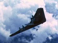 B-49。無尾翼の全翼機、B-35をジェット化した機体高速。性能に優れていたが安定性にかけ、テスト飛行で1号機が墜落しています。このとき殉職したテストパイロット、エドワーズ大尉を記念して、ミューロック乾湖はその後エドワーズ空軍基地と呼ばれることになったそうです。さまざまな機体のテスト飛行が行われる航空機開発の拠点として有名な場所。