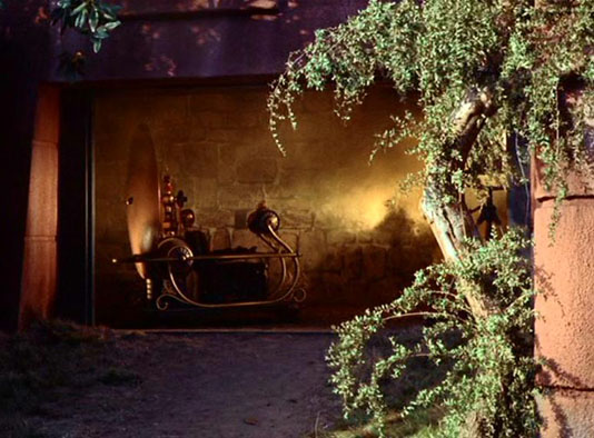 ここでモーロックが、相撲の肉じゅばんを被ったおばさんのような姿で登場。このモーロックはジョージ・パル自身がデザインしたものらしい・・・